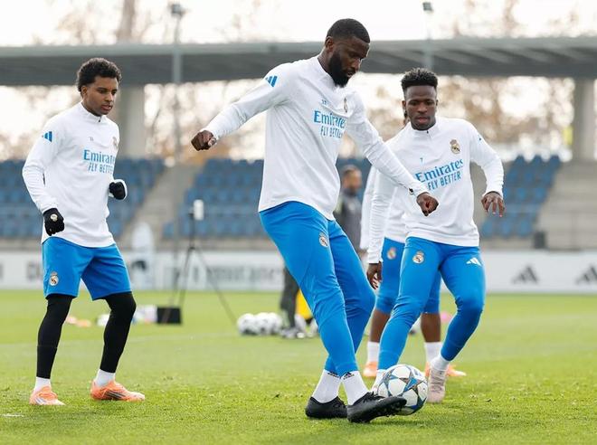 报道称,皇马全队在皇马体育城完成了训练,这也是球队在欧冠联赛阶段第六轮对阵曼城前的最后一次备战。球员们首先在健身房进行了热身激活,随后移步至草坪,开展了关节灵活性训练,并分组进行了压迫式抢圈练习。